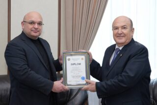 Знак, диплом и удостоверение руководителю Ташкентского филиала РЭУ им. Г.В. Плеханова академику Каландару Абдурахманову вручил заместитель начальника по научной работе и инновациям Академии МВД Республики Узбекистан, доктор философии, профессор, полковник Руфтулло Нигматов.