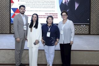 В завершении Юлии Берлиновой, как партнеру Университета был вручен Юбилейный знак «30 лет Ташкентскому филиалу РЭУ им. Г.В.Плеханова».