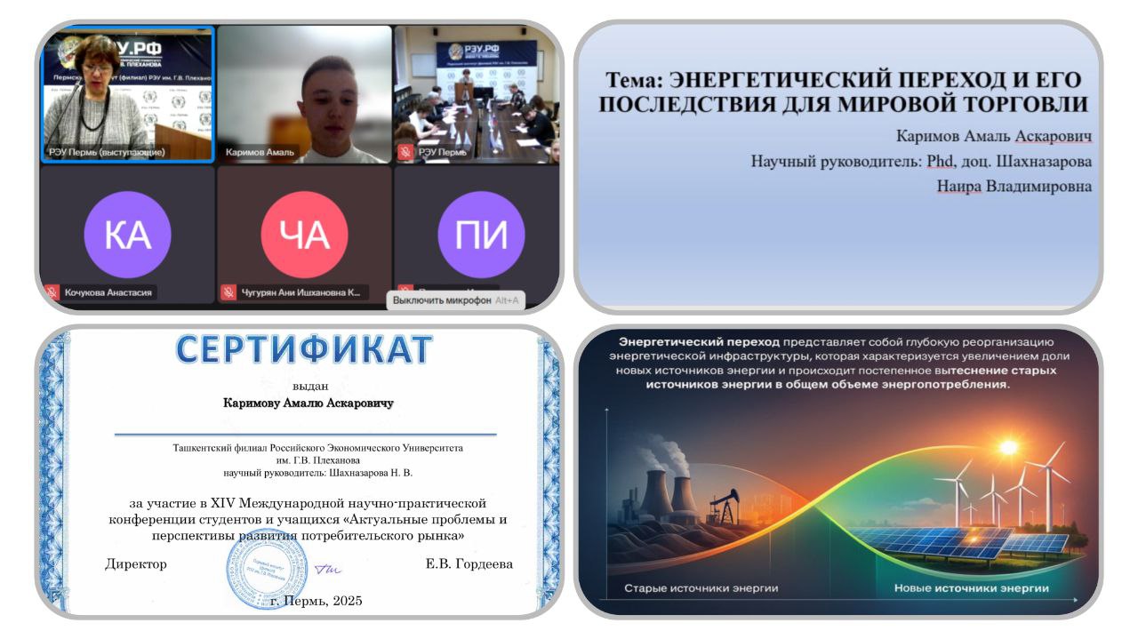 5 декабря 2025 года в рамках реализации программы «Центра реализации молодежных инициатив», направленной на развитие исследовательских и лидерских компетенций молодежи, студент 3 курса Каримов Амаль принял участие в работе XIV Международной научно-практической конференции студентов и учащихся «Актуальные проблемы и перспективы развития потребительского рынка».