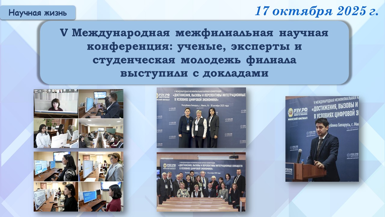 Организация научно-исследовательской работы в ВУЗе ориентирована на развитие основных научных направлений Филиала как базиса для повышения качества подготовки квалифицированных специалистов с высшим образованием, развитие международного сотрудничества в научной сфере, повышение качества образовательного процесса на основе привлечения студентов и слушателей к научно-исследовательской работе, внедрения элементов научной деятельности в учебный процесс, укрепления связи учебного процесса с научной работой Филиала.