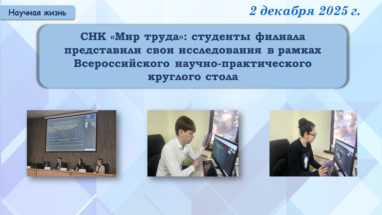 В 2022 году начал свою работу новый Коллегиально-совещательный орган – Научно-методический совет. В состав Научно-методического совета вошли ведущие учёные Филиала. Научно-методический совет возглавила заведующая кафедрой «Экономика труда и управление» д.э.н., проф. Зокирова Н.К. в качестве Председателя.