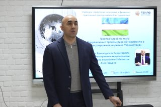 В Ташкентском филиале прошла встреча и мастер-класс на тему «Современные тренды риск-менеджмента в инвестиционной политике Узбекистана». Спикером мероприятия выступил Руководитель Секретариата Совета иностранных инвесторов при Президенте Республики Узбекистан Азиз Гафуров.