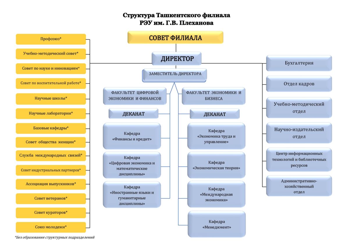 Структура Ташкентского филиала РЭУ им. Г.В. Плеханова