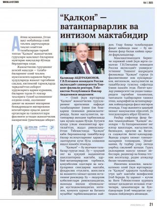 Қаландар АБДУРАҲМОНОВ, Г.В.Плеханов номидаги Россия иқтисодиёт университети Тошкент филиали ректори, Ўзбекистон Республикаси Фанлар Академияси академиги: — Олий ўқув юртларида “Қалқон” жамоатчилик гуруҳларининг яратилиши нафақат талабаларнинг ўзини ўзи бошқариш тизимини ривожлантиришда, балки масъулиятли, ватанпарвар авлодни тарбиялашда ҳам муҳим қадам бўлди. Бугунги кунда улкан имкониятлар яратилаётган, жадал ривожланаётган Ўзбекистонда “Қалқон” каби бирлашмалар ташаббускор ёшлар ислоҳотларнинг ҳаракатлантирувчи кучи бўла олишини яққол намоён этмоқда.